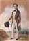 Scuola francese, secolo XIX - Ritratto di gentiluomo a figura intera in un paesaggio