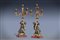 Scuola italiana, secolo XIX - Due candelieri a quattro braccia, uno sostenuto da Sirena e uno da Tritone, in bronzo a patina scura ed in bronzo dorato su base in marmo rosso polilobata