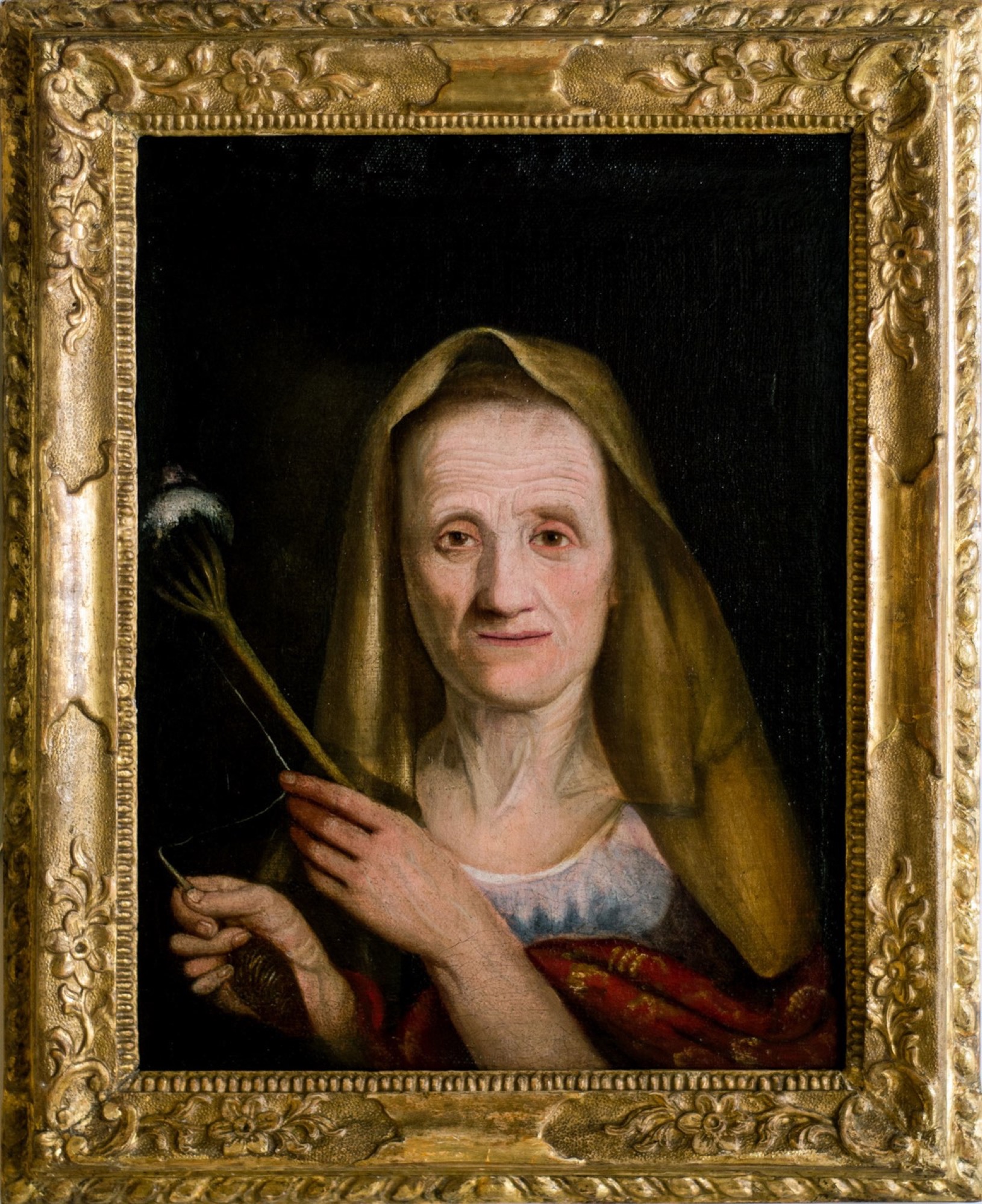 Scuola veneta, secolo XVIII - Vecchia con canocchia (probabilmente Lachesi)