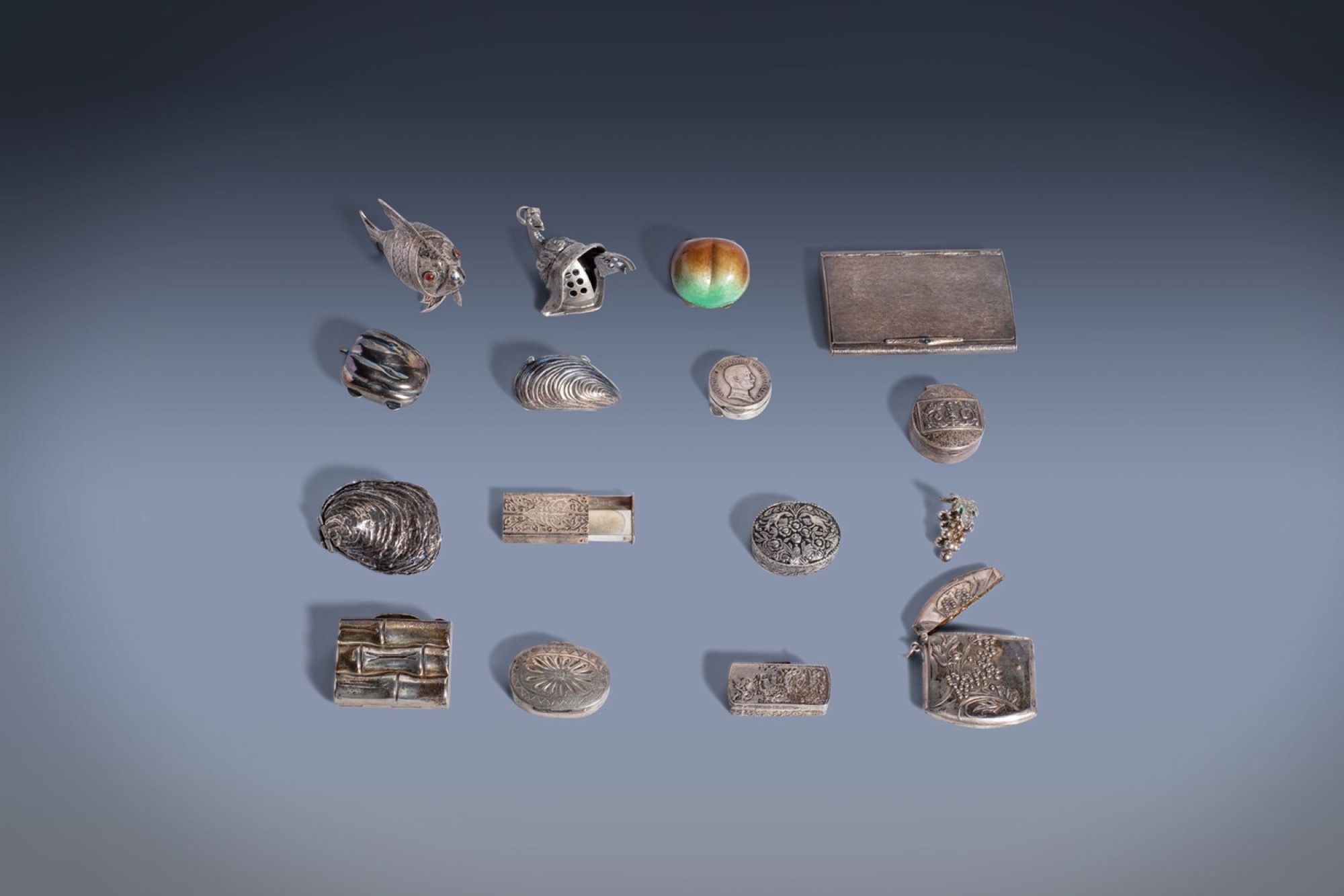 Lotto di sedici oggetti in argento, di misure e forme diverse