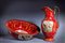 decoro a racemi vegetali in oro su fondo rosso, con uccelli entro riservedecoro a racemi vegetali in oro su fondo rosso, con uccelli entro riserve