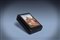 Scatolina in papier-maché con placca in porcellana rappresentante brigante e fanciulla, secolo XIX
