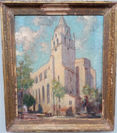Ignoto francese del XX Secolo "Cattedrale" olio su cartone (cm 60x50) In cornic