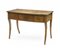 Antico tavolo scrittoio con tre cassetti nella fascia e quattro gambe a sciabol