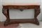 Consolle lastronata con fascia e gambe mosse intagliate a motivi stilizzati. Ga