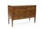 Comò in noce a tre cassetti interamente decorato con filettature. Quattro gambe