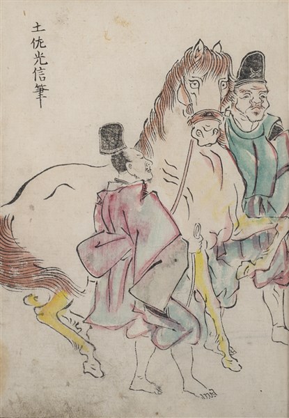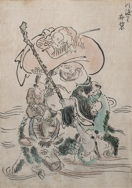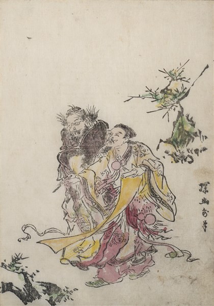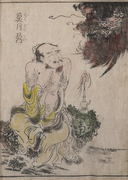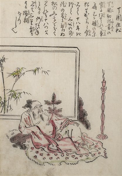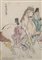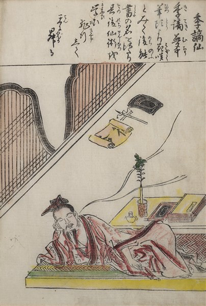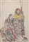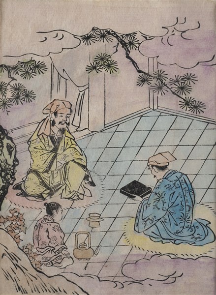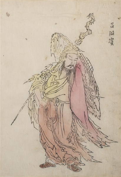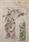 Gruppo di dodici stampe a colori raffiguranti personaggi e calligrafia. Giappo