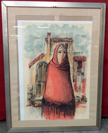 "Figura in rosso" litografia (cm 70x50) es. 9/100, in cornice. Allegato certificato di autenticità