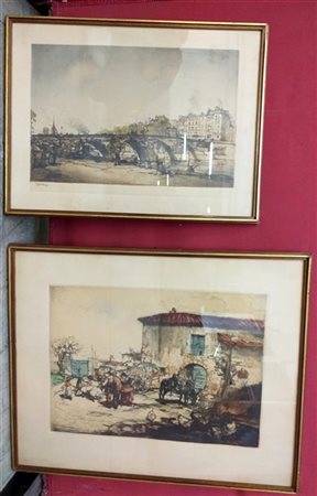 Armand Coussens "Paesaggi e scorci" quattro acqueforti a colori di cui tre firma
