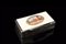 Tabacchiera di forma rettangolare in tartaruga con coperchio decorato da uno sc