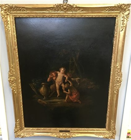 Scuola del secolo XIX "Putti" coppia di dipinti ad olio su tavoletta (cm 63,5x51) In cornici (restauri)