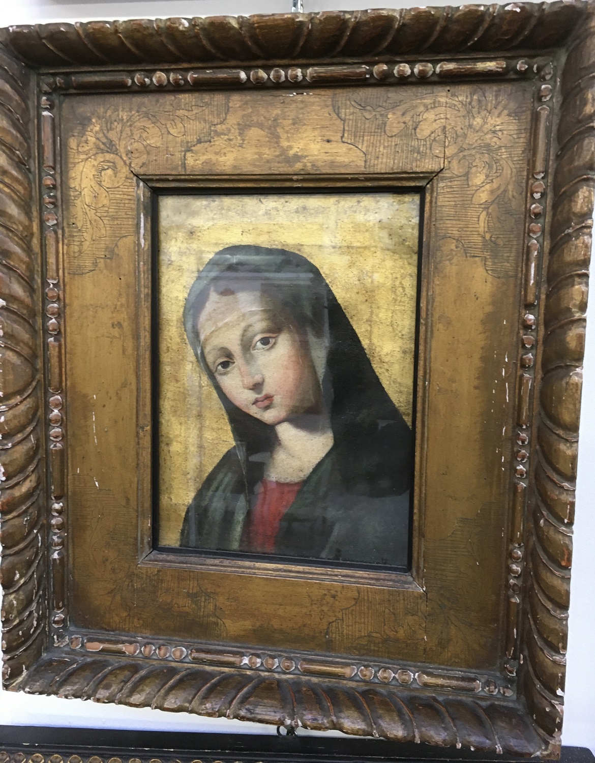 Ignoto "Volto della Vergine" olio su tela (cm 33x24,5) In cornice (difetti e re