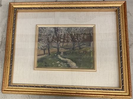 "Sentiero nel bosco" olio su cartone (cm 21x27) Firmato in basso a sinistra. In cornice