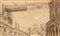 Scenografo del secolo XIX Scenografia con edifici e porto Penna e inchiostro b