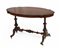 Tavolino ovale in legno con piano lastronato di forma mossa, gambe tornite intagliate riunite da traversa (cm 122x71x70) (lievi difetti)