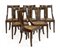 Gruppo di sei sedie a gondola in noce con gambe anteriori a sciabola