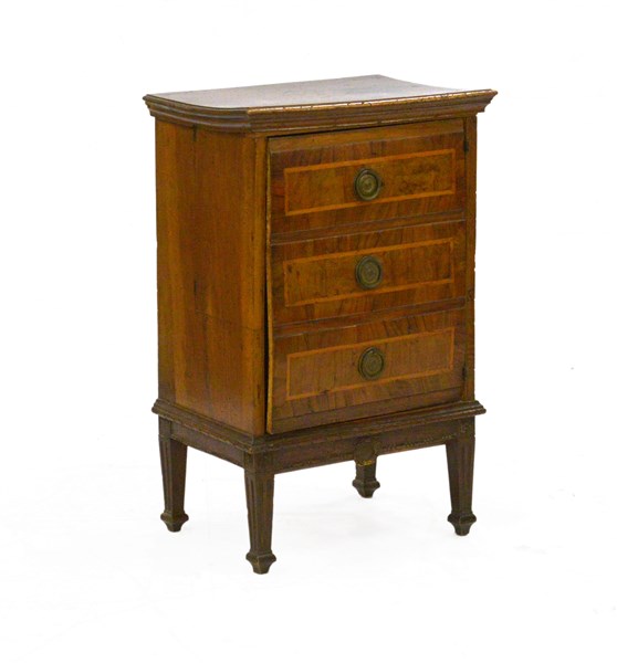 Comodino in noce con sportello centrale a finti cassetti filettati, gambe rastemate, Veneto secolo XVIII (cm 53x83x36) (difetti e restauri)