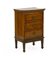 Comodino in noce con sportello centrale a finti cassetti filettati, gambe raste