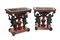 Coppia di consoles in legno laccato con sostegni a putti a tutto tondo con vasi
