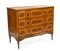 Comò a tre cassetti lastronato in noce, filettato e intarsiato a motivi geometr