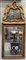Specchiera con cornice lastronata e profilo dorato. Cimasa in legno intagliato e dorato a volute centrata da verrei-paint da paesaggio fluviale, Veneto secolo XVIII (cm 80x36) (difetti)