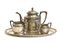 Servizio da tè e caffè in argento a corpo liscio con fascia decorata a motivi L