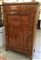 Coppia di armadietti ad un'anta lastronati in noce e radica di noce e filettati. Ante e fasce intarsiati a volute vegetali sec. XIX (cm 110x173x56) (difetti e restauri)