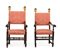 Coppia di seggioloni in noce con puntali intagliati e dorati, braccioli mossi, gambe squadrate riunite da traverse tornite (difetti)