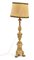 Portacero in legno scolpito, intagliato e dorato a foglie d'acanto, scanalature e piedi ferini. Secolo XIX (h. cm 146) (difetti)