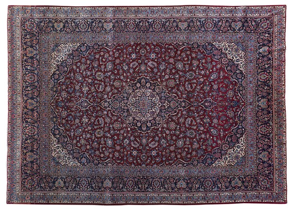 Tappeto Keshan, Persia secolo XX Disegno a medaglione con puntali a fondo blu