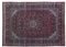 Disegno a medaglione con puntali a fondo blu e bianco su campo rosso granato, cosparso di rami fioriti. Bordura con motivo Herati su fondo blu notte (cm 407x318) (lievi difetti)