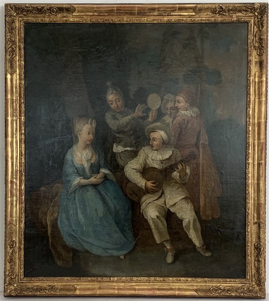 Scuola veneta del secolo XVIII "Serenata all'aperto" olio su tela (cm 90x80) In