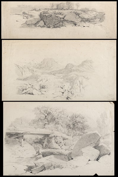 Scuola della fine del secolo XIX - inizi XX Studi di paesaggi Tre disegni a ma