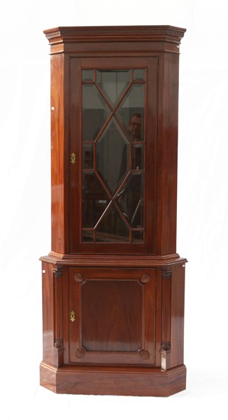 Angoliera a due corpi con parte superiore ad un anta a vetri, parte inferiore ad uno sportello (cm 82x198x46)