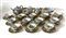 Servizio da tè in ceramica decorata a lustro a motivi vegetali e nel cavetto con volti rinascimentali. Composto da: teiera, lattiera, zuccheriera, dodici tazze e quindici piattini (difetti)