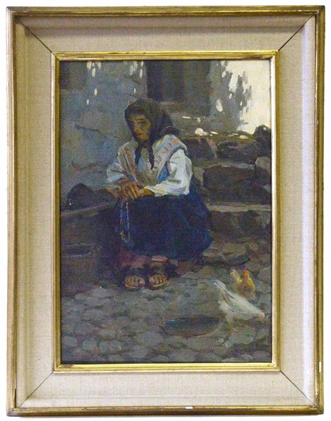 "La peccatrice di Valle d'Aosta" olio su compensato (cm 50x35) Firmato in basso a sinistra. Al retro: titolato. In cornice
