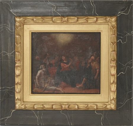 Ignoto "Pentecoste" antico dipinto ad olio su tela (cm 23x26) In cornice (difetti)