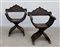 Coppia di poltroncine savonarola con schinale sagomato e intagliato (difetti)