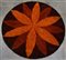Tappeto - Arazzo meccanico di moderna manifattura, metà secolo XX ca. Decoro a corolla di fiore stilizzato con petali nei toni del rosso mattone, zafferano e bordeaux su fondo marrone scuro (d. cm 226) (lievi difetti)