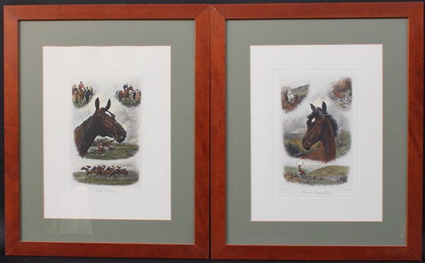 Coppia di litografie inglesi a colori raffiguranti cavalli (cm 35x25) in cornic