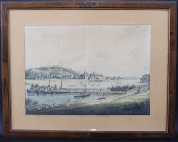 Gruppo di tre litografie colorate a mano raffiguranti paesaggi (cm 35x50) in co