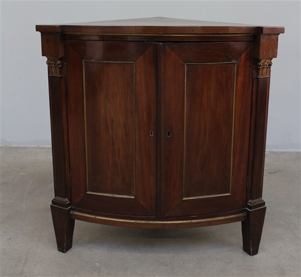Angoliera stile impero a due ante con applicazioni in metallo, piedi scanalati ( cm 92x95x66) (difetti)