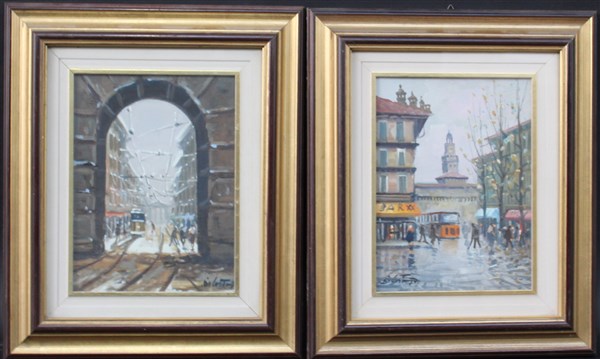 Firma indecifrata ''Scorci di Milano'' coppia di dipinti ad olio su tela ( cm 2