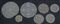 Lotto di sette centrini realizzati in pizzo al tombolo in cotone, città di Cantù, Lombardia, metà secolo XX.