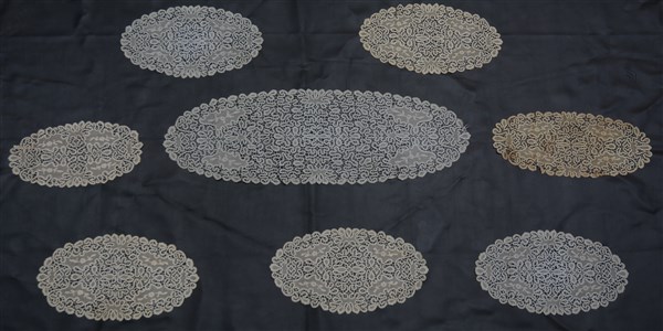 Lavorato al tombolo con tecnica detta "di Cantù". Decorazione con numerose serpentine legate da una reticella. Misure diverse (il più grande cm 98x32) (lievi difetti)