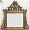Specchiera in legno intagliato e dorato con cimasa scolpita a mascherone e vola