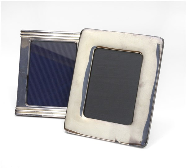 Lotto di due cornici portafoto in argento, misure e decori diversi. Titolo 925