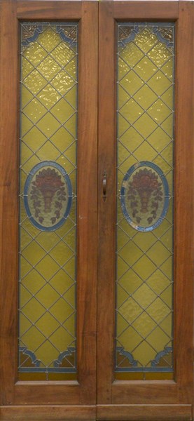 Lotto 742 | Porta a due battenti in legno decorata con vetrate policrome legate a piombo e