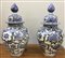 Coppia di vasi con coperchio in porcellana bianca e blu con decoro floreale. Gi