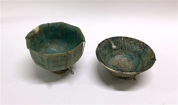 Manifattura persiana, sec. XVI Due ciotole decorate nei toni del blu (d. cm 18,5; d. cm 20) (difetti e restauri)